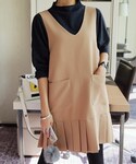 プリーツワンピに薄手のカットソーを合わせたカジュアルガーリースタイル♪ Vネックのインにあわせたハイネックトップスでトレンドライクに! スタッズシューズがコーデのはずしポイントに★ ☆DHOLICの新作は24時間限定で10%OFF☆ :::::::::::::: DHOLIC's Instagram account ↓↓↓ dholic_official ::::::::::::::