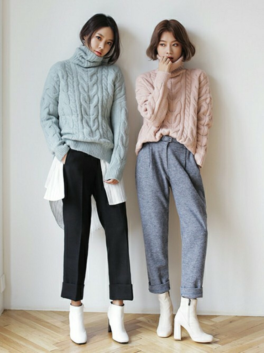 パステルカラーのケーブル編みタートルネックに ゆるっとパンツを合わせたスタイル♪ ネック部分は折り返しても、そのまま伸ばしてきてもOK!! シャツとのレイヤードや、前だけインしても・・・ どちらのスタイルがお好みですか?? ※モデル身長:左169cm・右162cm ☆DHOLICの新作は24時間限定で10%OFF☆ :::::::::::::: DHOLIC's Instagram account ↓↓↓ dholic_official ::::::::::::::