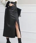 ディーホリックのスカート「センタースリットコーティングハイウエストロングスカート」を使ったコーディネート