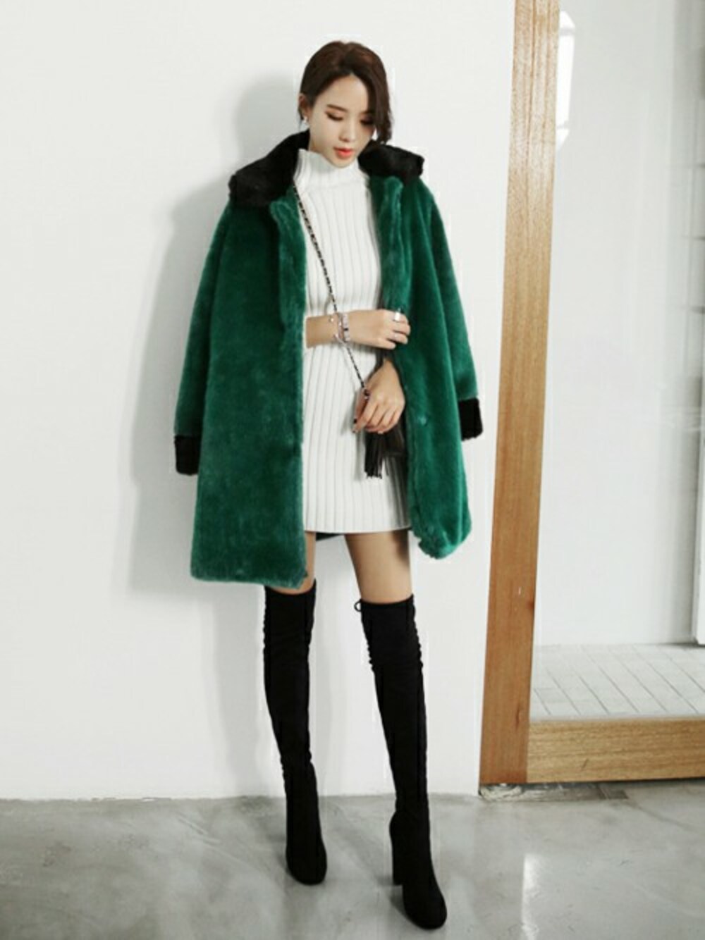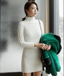 ディーホリックのワンピース「ワイドリブニットハイネックワンピース」を使ったコーディネート