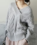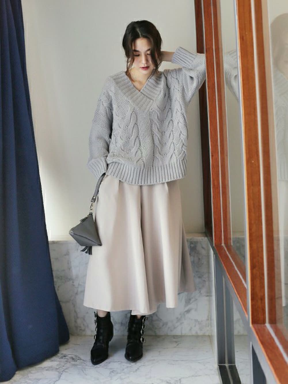 ディーホリックのニット/セーター「Vネックオフショルダーケーブルニットプルオーバー」を使ったコーディネート