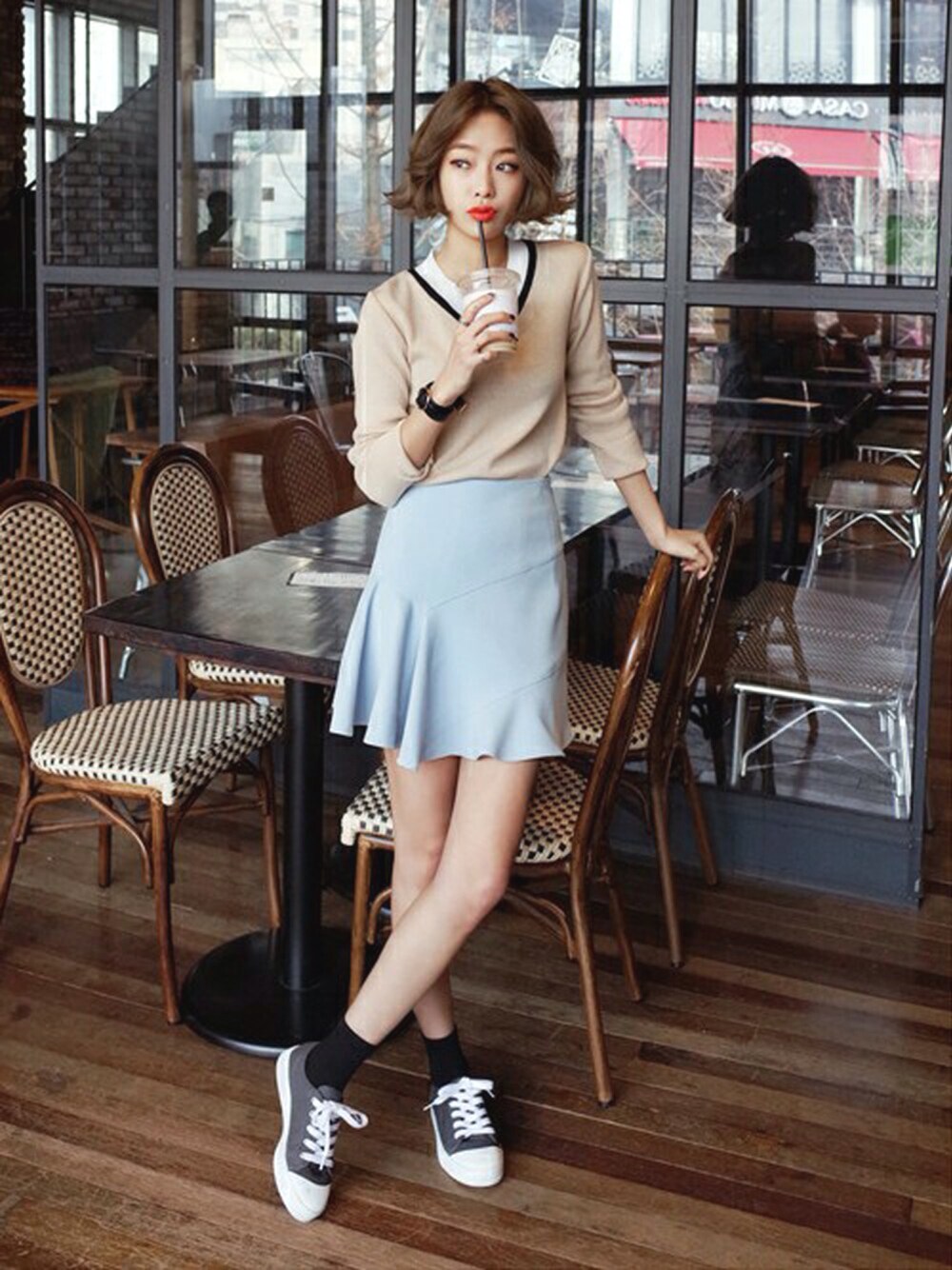 ☆Vネックカラーポイントニットプルオーバー・全5色 ¥2,380+消費税 ☆ユニークフレアヘムハイウエストミニ丈スカート ・全2色 ¥3,700+消費税 デコルテが綺麗に見えるVネックに配色でポイントが 与えられたニットと春らしい空色のフレア感が フェミニンなスカートを合わせた女性らしい コーデです♪ハイウエストを生かしてニットをスカートに インするとすっきり見えます^^ ☆DHOLICの新作は24時間限定で10%OFF☆ :::::::::::::: DHOLIC's Instagram account ↓↓↓ dholic_official ::::::::::::::