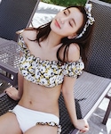 ディーホリックの水着「ヘアバンドSETフラワーオフショルダービキニ」を使ったコーディネート