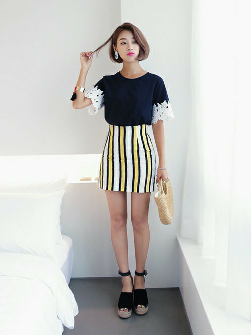 夏らしいストライプパターンアイテムを使ったレディコーデ♡ 視線集める色遣いが魅力的なスカートは 一枚で存在感バッチリなので トップスはシンプルに^^ ラフなコットンTシャツに レースデザインを施し女性らしさをプラス♡ レディなルックに仕上げました♪ ☆DHOLICの新作は24時間限定で10%OFF☆ :::::::::::::: DHOLIC's Instagram account ↓↓↓ dholic_official ::::::::::::::