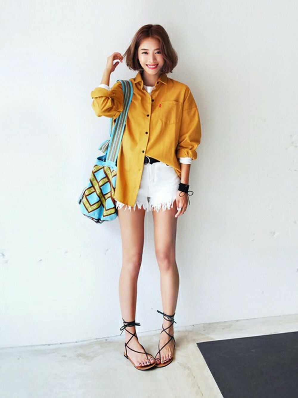 メンズライクなカジュアルスタイル☆彡 ベーシックながらも カラーでルックのメインになるシャツ! オーバーサイズ×ショートパンツで メンズライクのながらも 女の子らしい華奢な体型をメイク♡ ホワイトベースにマスタードカラーで 飽きにピッタリなルックの完成です♪ :::::::::::::: DHOLIC's Instagram account ↓↓↓ dholic_official ::::::::::::::