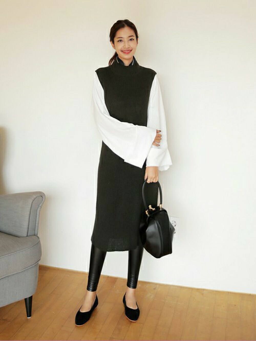 縦のライン強調で スタイルアップ☆彡 首詰まりのニットに フレアスリーブのブラウスで トレンド性もバッチリ◎! レザーライクのレギンスで コーデをぐっと引き締めたのがポイント! ☆DHOLICの新作は24時間限定で10%OFF☆ :::::::::::::: DHOLIC's Instagram account ↓↓↓ dholic_official ::::::::::::::
