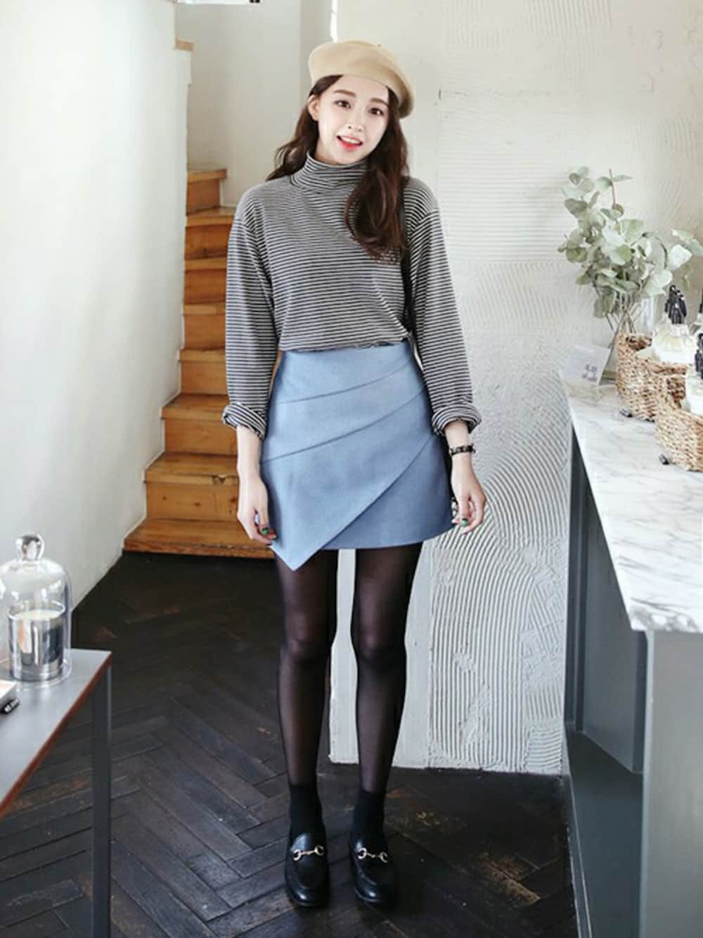 ユニークなデザインのミニスカートで カジュアルの定番ボーダーTシャツも 周りと差のつくオシャレに^^ アンバランスな裾とAラインシルエットで きれいな足を演出♪ ☆DHOLICの新作は24時間限定で10%OFF☆ :::::::::::::: DHOLIC's Instagram account ↓↓↓ dholic_official ::::::::::::::