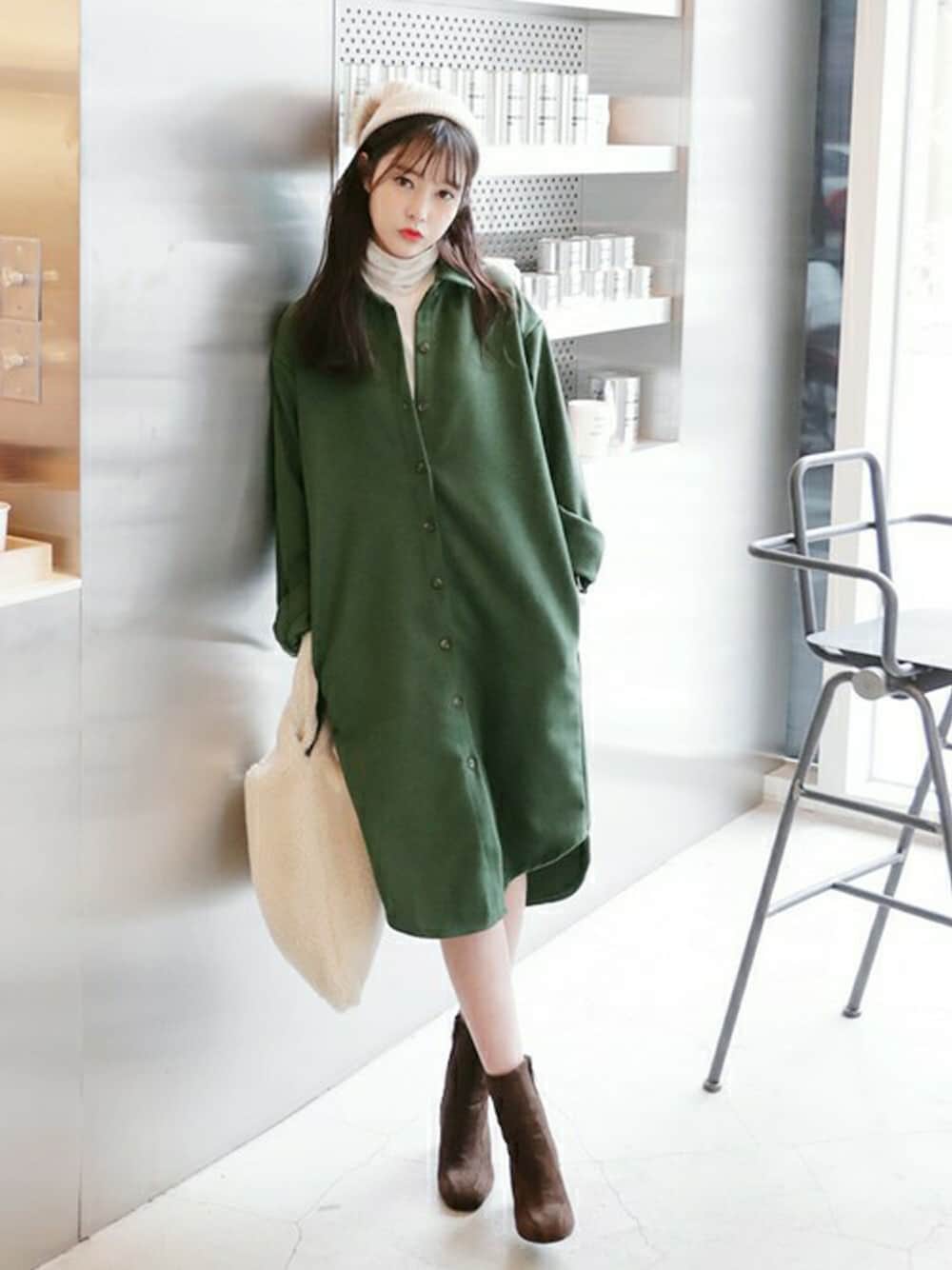 カラーシャツワンピで 周りと差をつけるスタイリング☆彡 ドロップショルダーで ゆるっと可愛らしいシルエットが自慢♪ ウールを含む素材だから 冬も暖かく着用していただけます^^ ☆DHOLICの新作は24時間限定で10%OFF☆ :::::::::::::: DHOLIC's Instagram account ↓↓↓ dholic_official ::::::::::::::