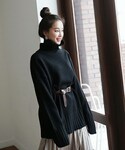 ゆるいシルエットがおしゃれ! ブラックのオーバーサイズニットに シルキーな素材感のプリーツスカートを♡ ダークトーンのコーデも 女性らしい軽やかさに仕上がります♪ ベルトでウエストマークして スタイルアップを演出します^^ ☆DHOLICの新作は24時間限定で10%OFF☆ :::::::::::::: DHOLIC's Instagram account ↓↓↓ dholic_official ::::::::::::::