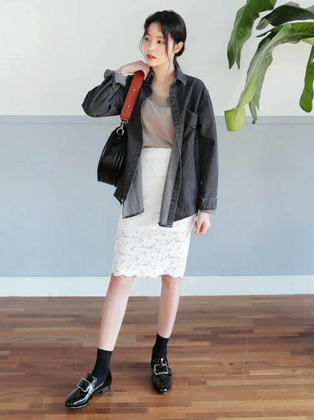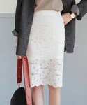 ディーホリックのスカート「スカラップヘムフラワーレースミディスカート」を使ったコーディネート
