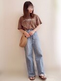 2244大人気⭐️スリッドレイヤードTシャツコーデ💙