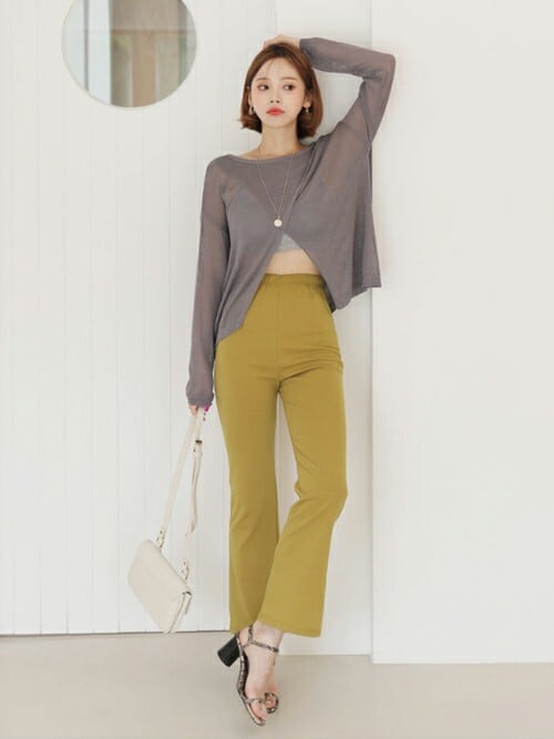 美脚が簡単に叶うブーツカットやフレアのパンツ🧚🏻♀️ 挑戦しずらそうで実はとっても着回し万能な優秀アイテム! オールシーズン使えるから、フラットシューズやブーツ、サンダルと足元に変化をつけて楽しんで💞