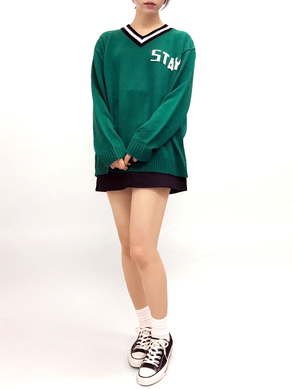 スクールニット color:green/yellow size:free ベルト付きツイルスカート color:black size:free