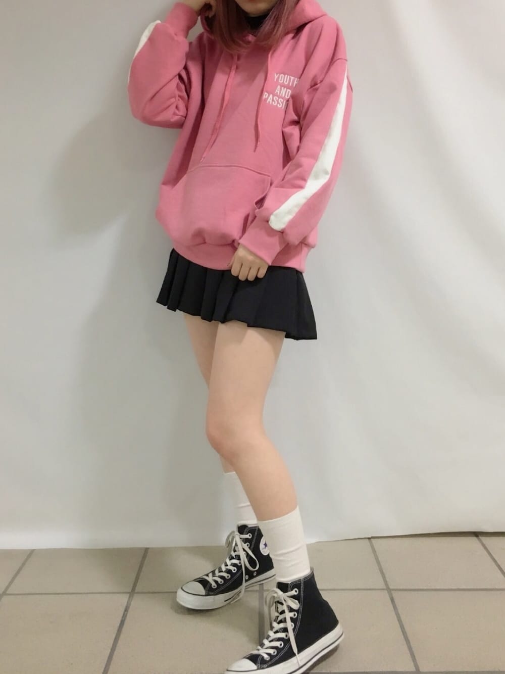 ラインパーカー color:white/pink/black size:free プリーツスカパン color:black size:free