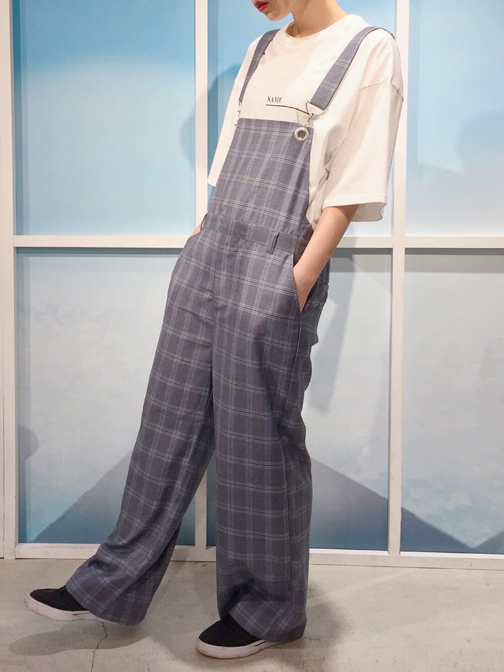 チェック柄サロペット color:grey/brown size:S/M NAME Tシャツ color:pink/white/black size:free