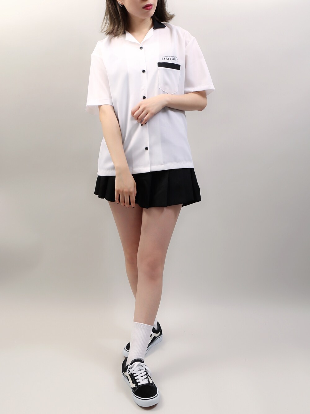 STAFF ONLY開襟シャツ color:white/black size:free プリーツスカパン color:white/black size:free
