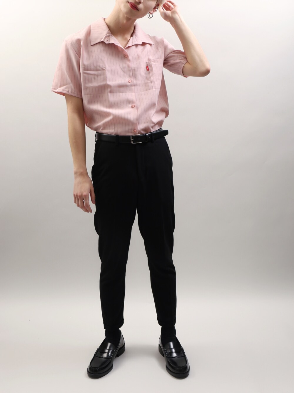 ピンク系のシャツ/ブラウスを着用したメンズの夏コーディネートの1枚目の写真