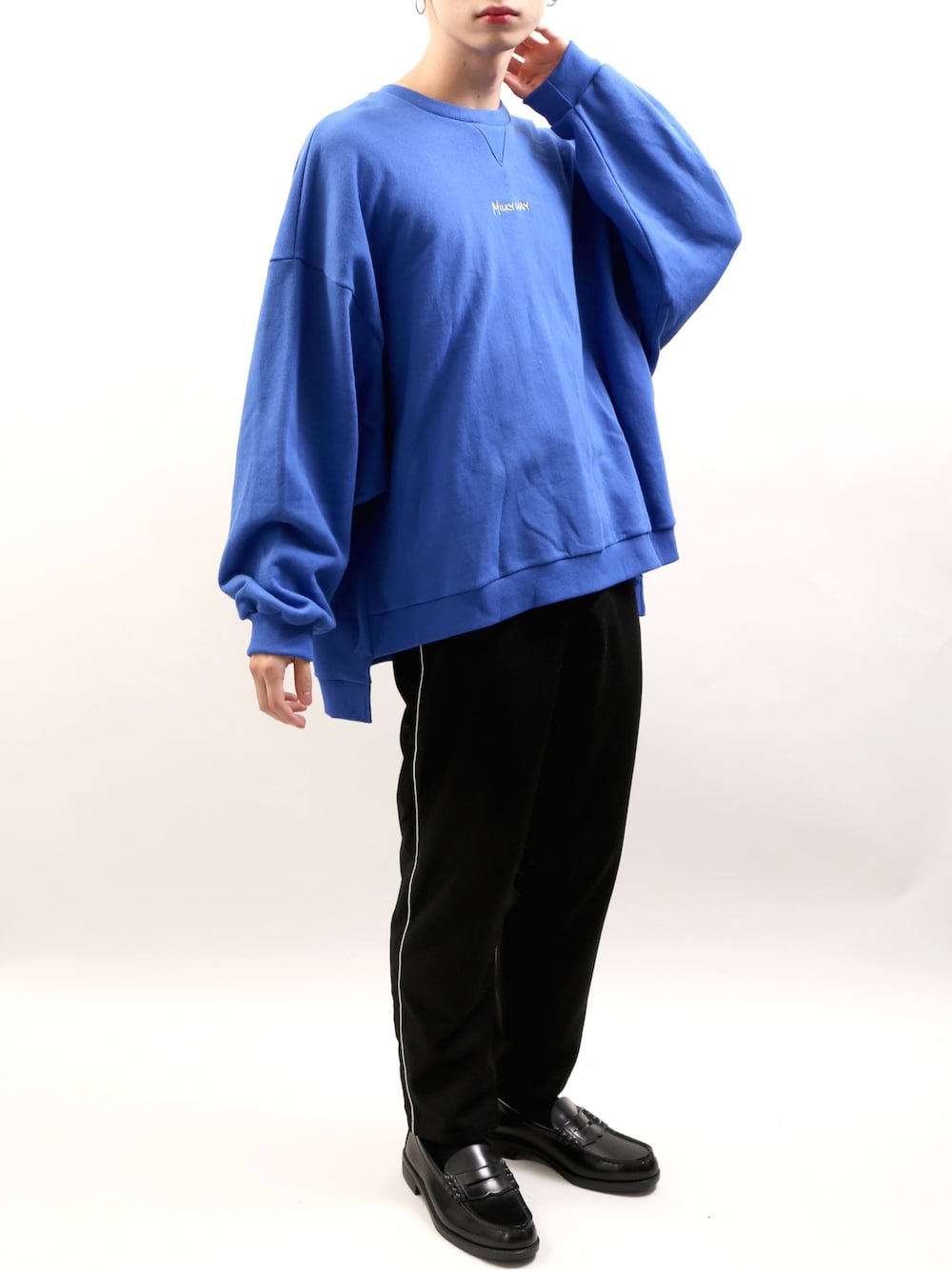 Milky Wayスウェット color:blue/white/black size:free パイピングパンツ color:black size:S/M