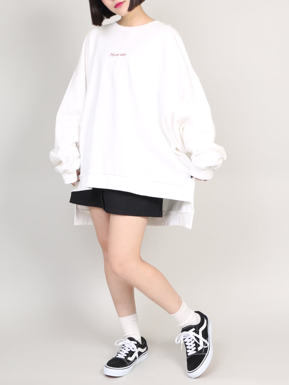 Milky Wayスウェット color:white/blue/black size:free パイピングミニスカート color:black size:free
