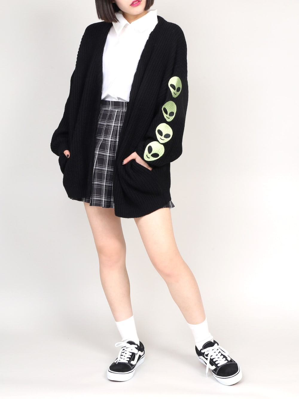 エイリアンニットカーディガン color:black size:free ワンポケットシャツ color:pink/white/black size:free チェック柄プリーツスカパン color:brown/black size:free