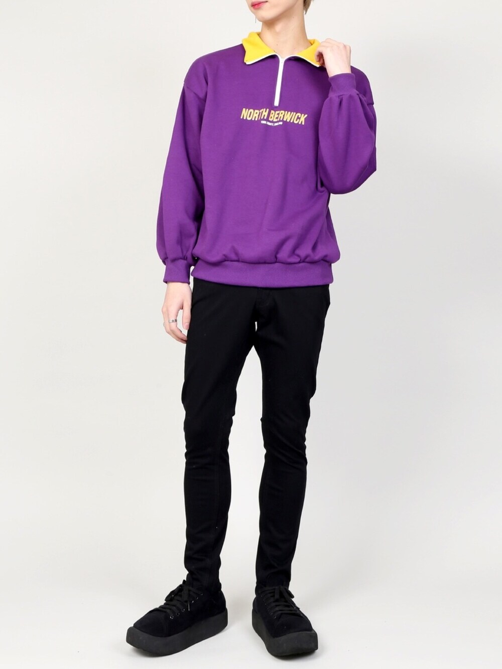 ハーフZIPバイカラースウェット color:purple/navy/black size:free