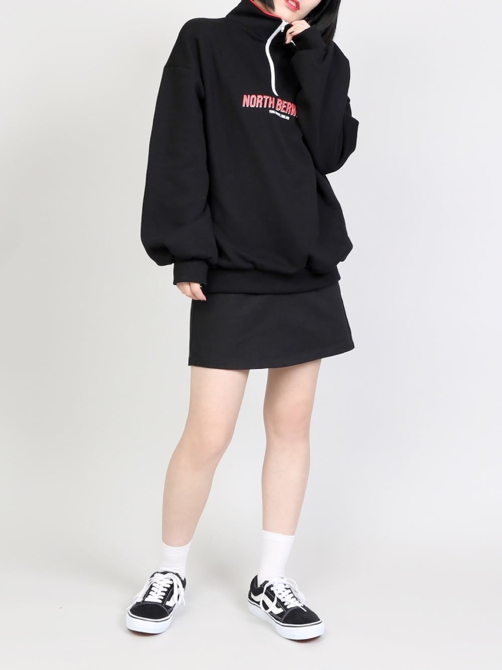 ハーフZIPバイカラースウェット color:purple/navy/black size:free ベルト付きスカート color:black/beige size:free