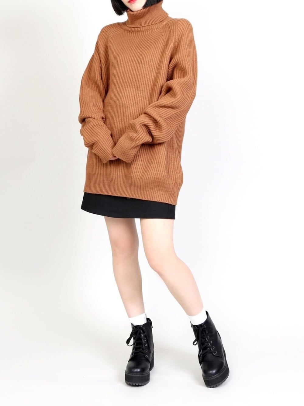 タートルネックニット color:brown/black size:free ベルト付きミニスカート color:black size:free