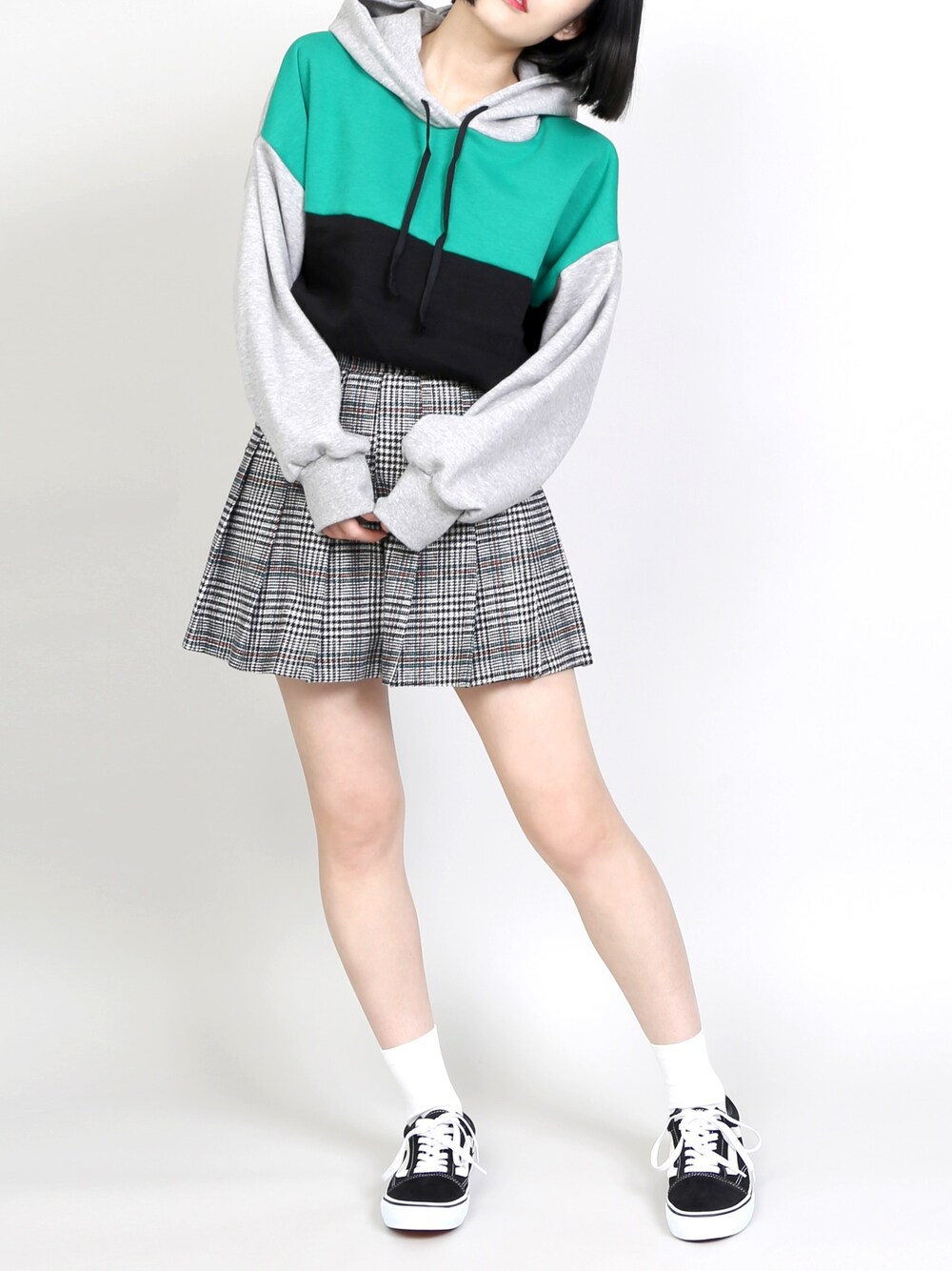 配色プルパーカー color:green/red size:free チェック柄プリーツミニスカパン color:black/brown size:free