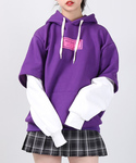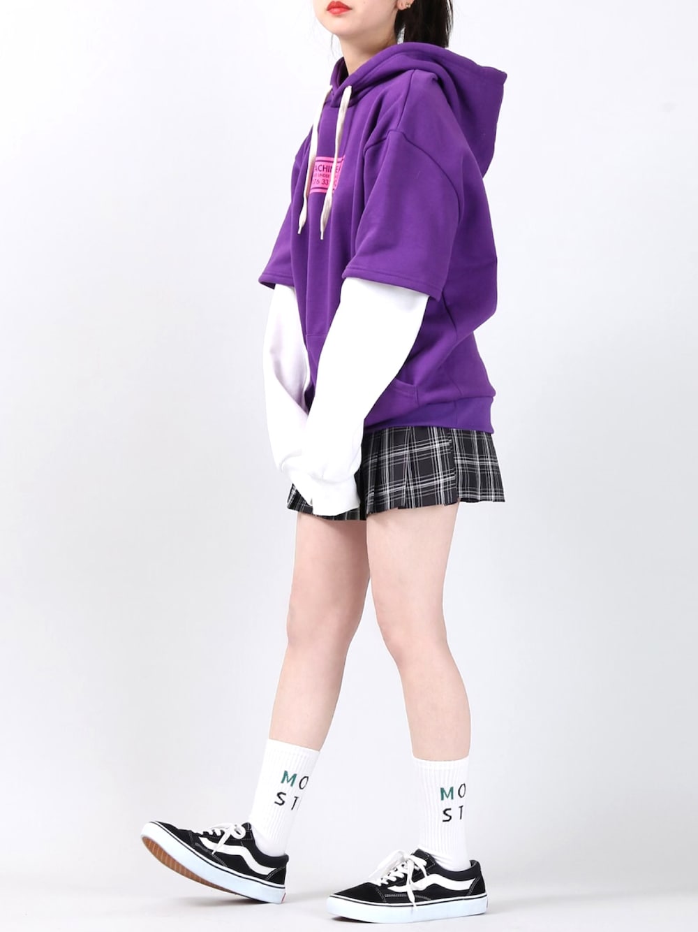 フェイクレイヤードプリントパーカー color:purple/green/black size:free チェック柄プリーツスカパン color:brown/black size:free