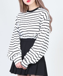 ボーダーロンT color:white/green/yellow size:free ツイルロングスカート color:beige/black size:free