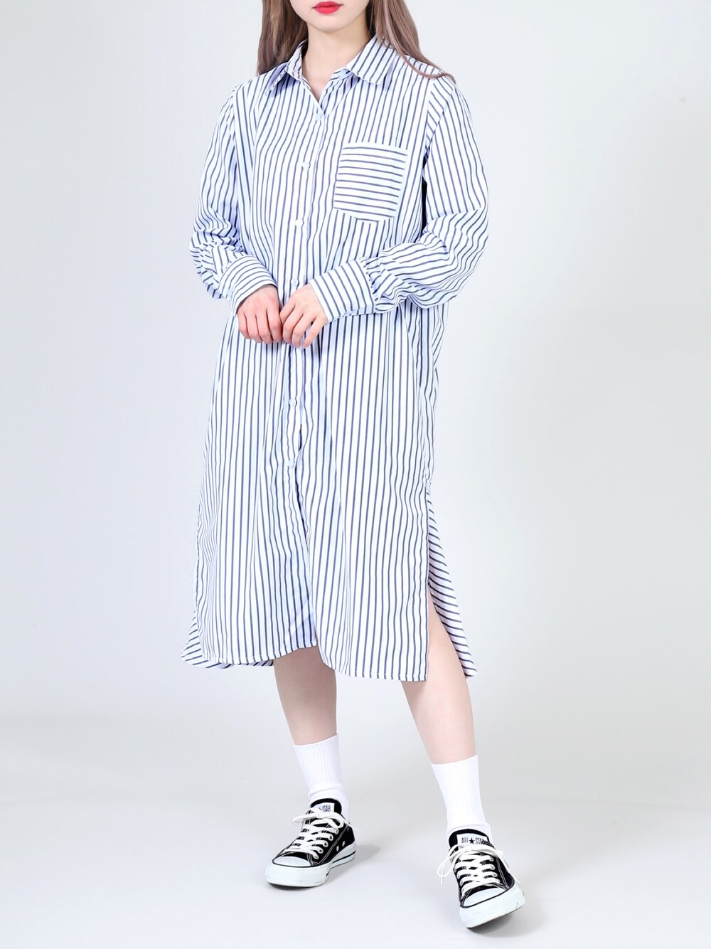 DING_officialのシャツワンピース「DING/ストライプシャツワンピ-ス」を使ったコーディネート
