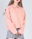 ステッチジャケット color:pink/white/black size:free ベルト付きチェックスカート color:grey/beige size:free