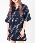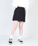 ATTENTION半袖開襟シャツ color:white/navy size:free ステッチスカート color:beige/black size:free