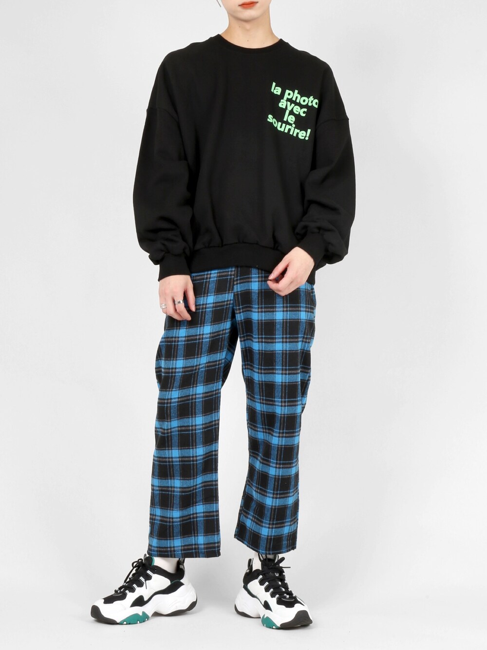 photoビッグスウェット color:black/beige/white size:free チェック柄イージーパンツ color:blue/red/green/black size:free