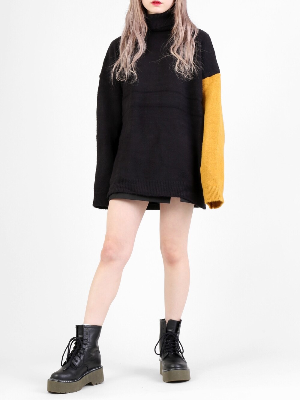 バイカラータートルニット color:black/white size:free スリットスカパン color:black size:free