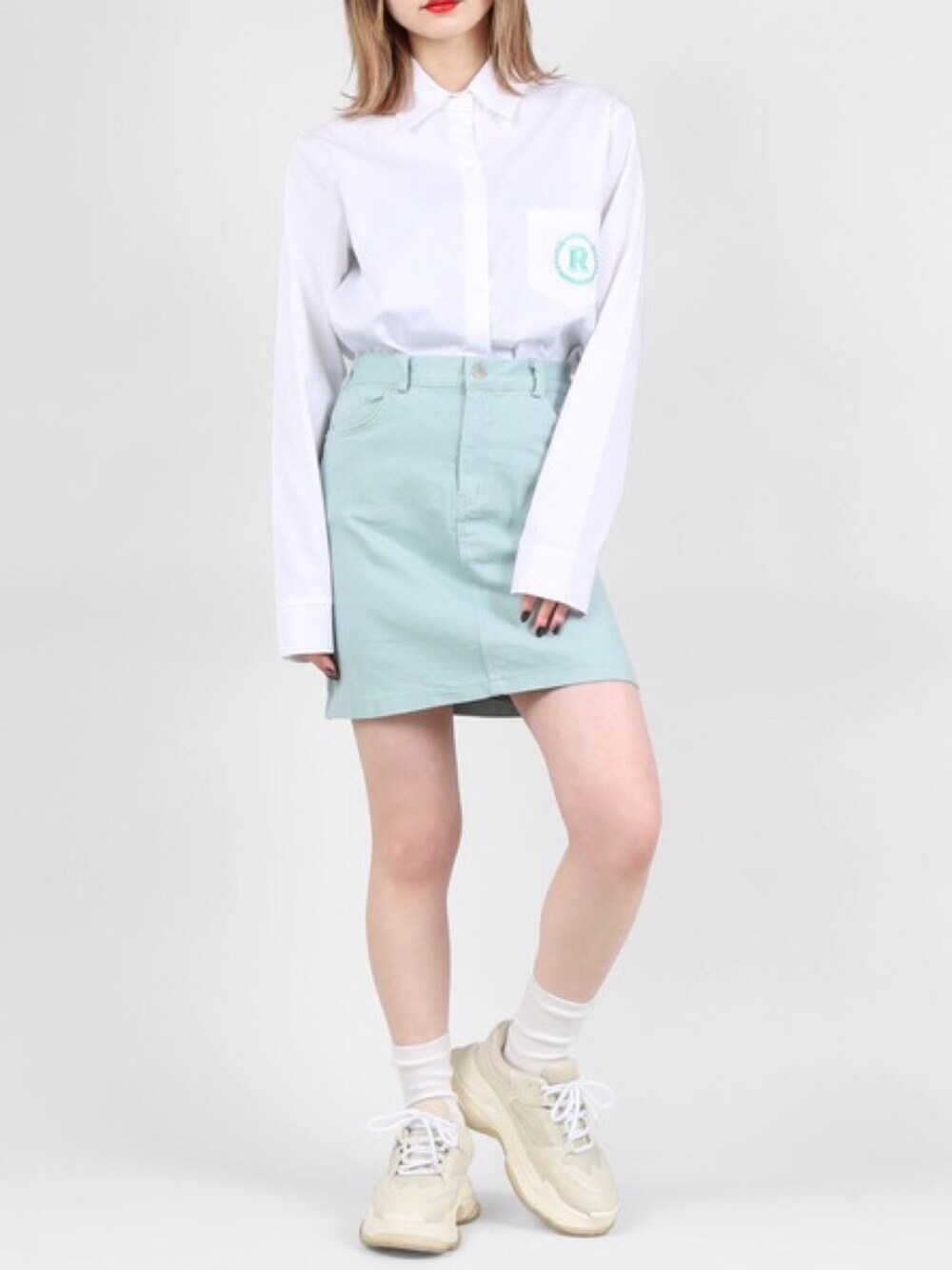 ワンポイント刺繍シャツ color:white/pink/green size:free
