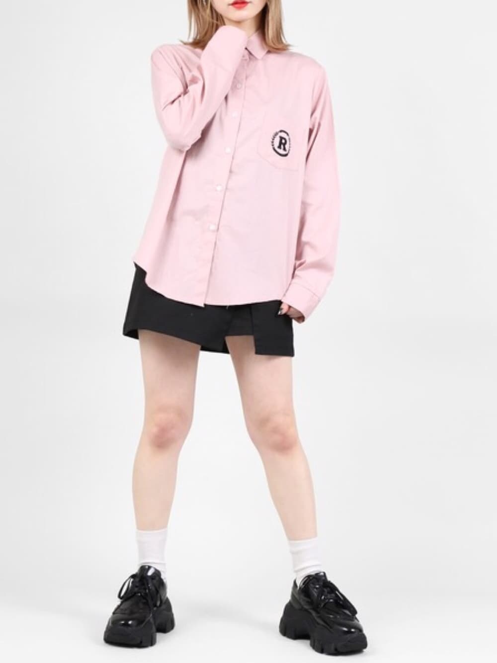 ワンポイント刺繍シャツ color:pink/green/white size:free