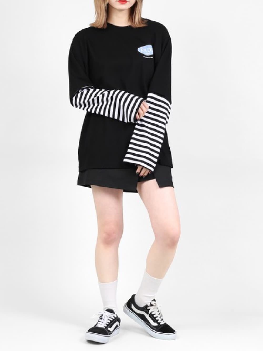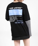 フェイクレイヤードロングTシャツ color:black/blue/white size:free