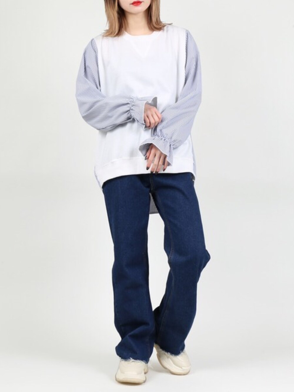 ストライプ切り替えトップス color:white/navy size:free