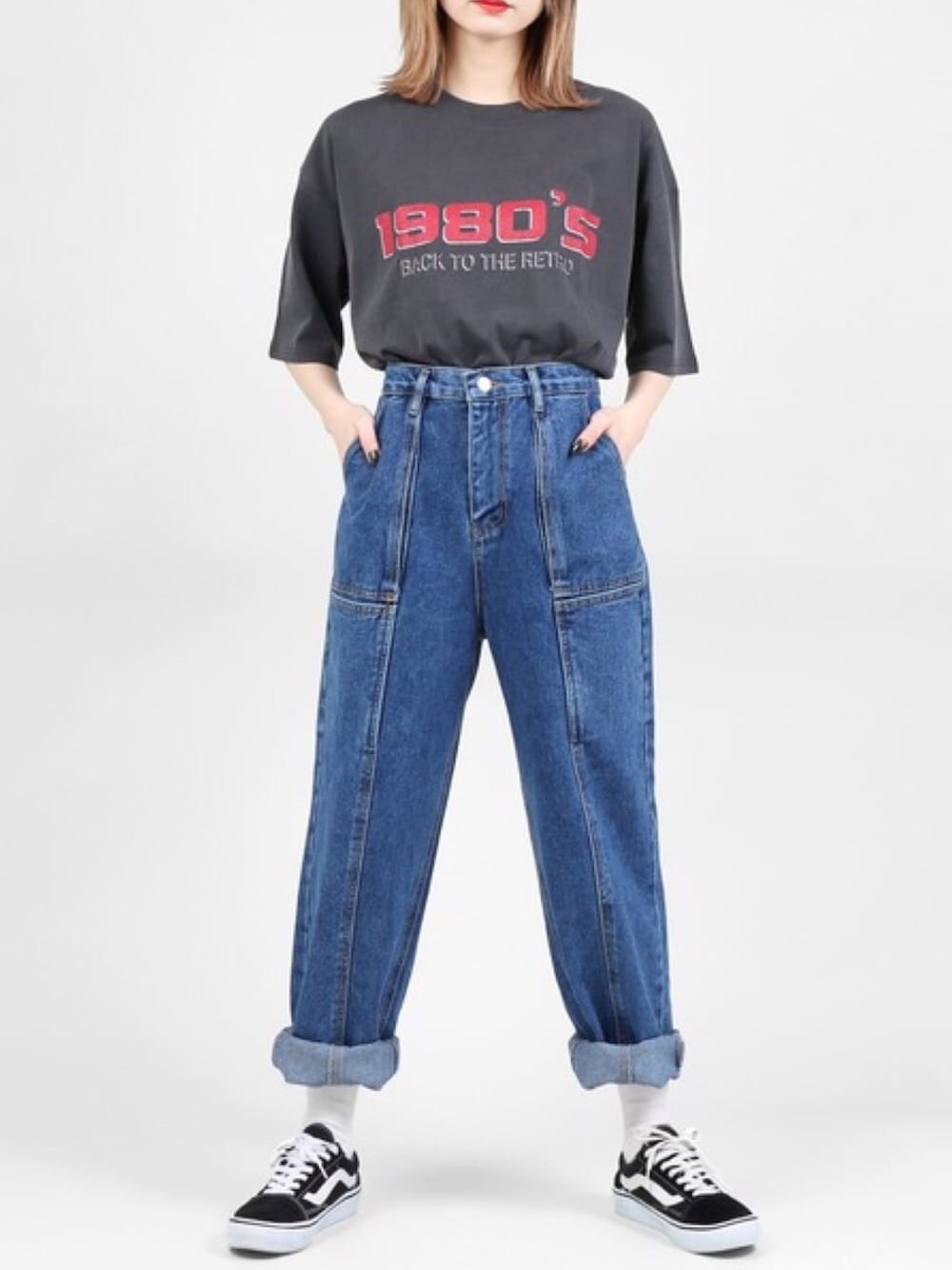 1980sビッグシルエットTシャツ color: charcoal/white size:free