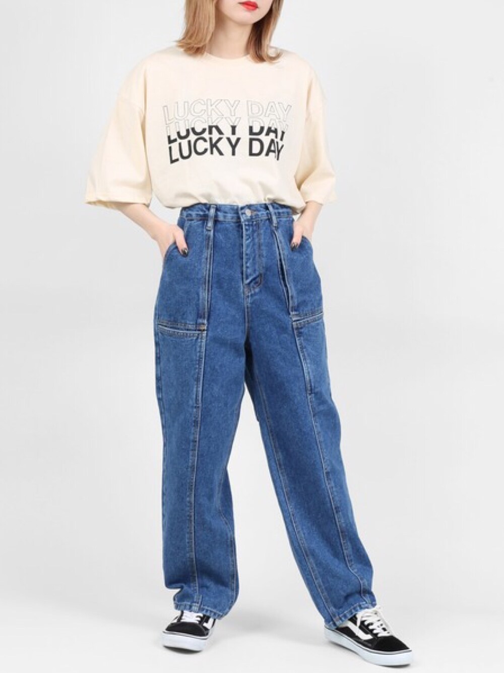 LUCK DAYビッグシルエットTシャツ color:ivory/green/black size:free