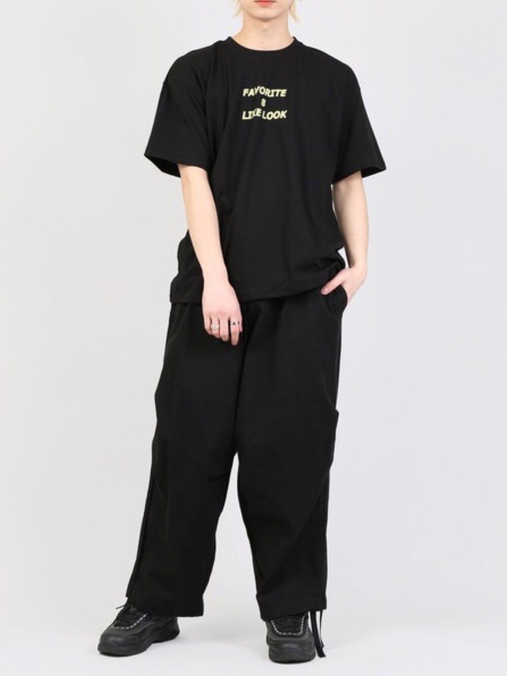 FAVORITE Tシャツ color:black/white/gray size:free ワイドイージーパンツ color:black/baige/khaki size:free