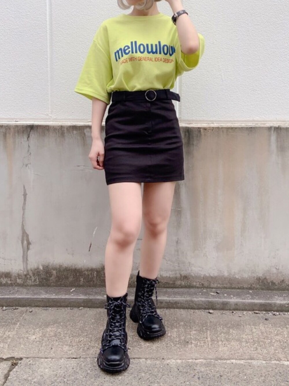 mellowlow Tシャツ color:laim/white/black size:free