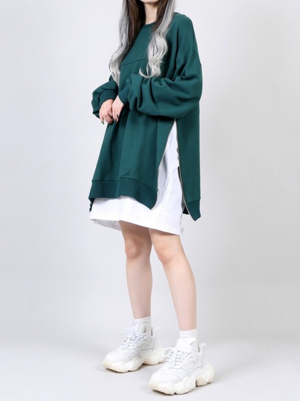 サイドジップフェイクレイヤードスウェット color:green/black/gray size:free