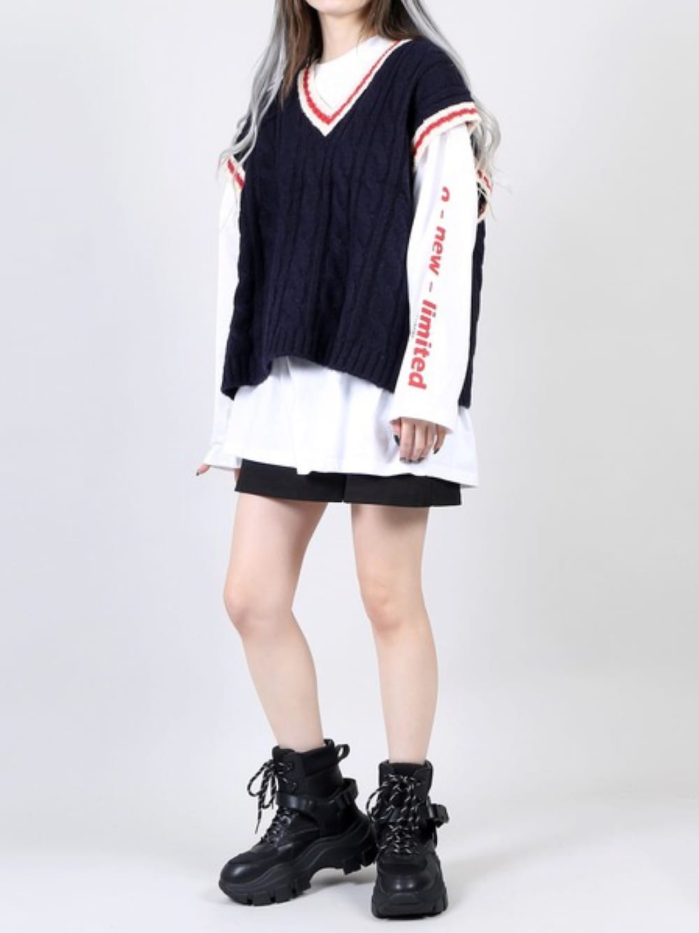 オーバーチルデンニットベスト color:navy/off white/brown size:free onewロンT color:white/yellow/black size:free