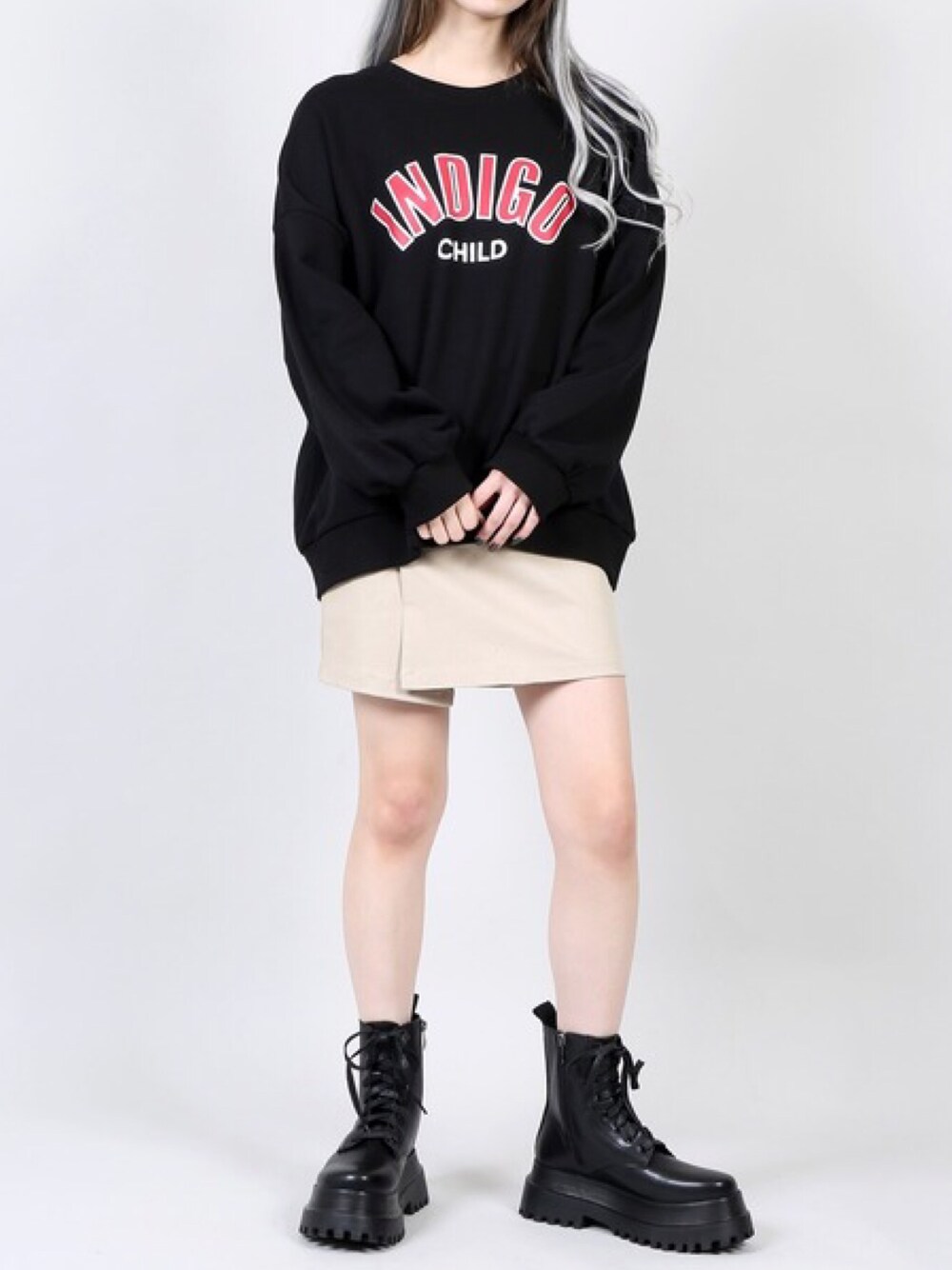 INDIGOスウェット color:black/red/off white size:free ベルト付きミニスカート color:beige/black size:free