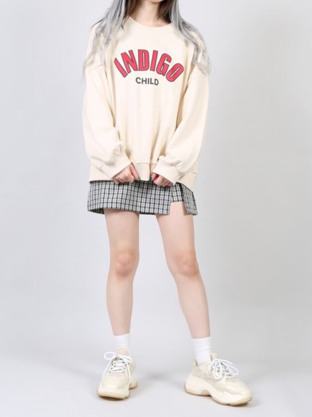 INDIGOスウェット color:off white/red/black size:free チェック柄スリットミニスカパン color:green/beige size:free