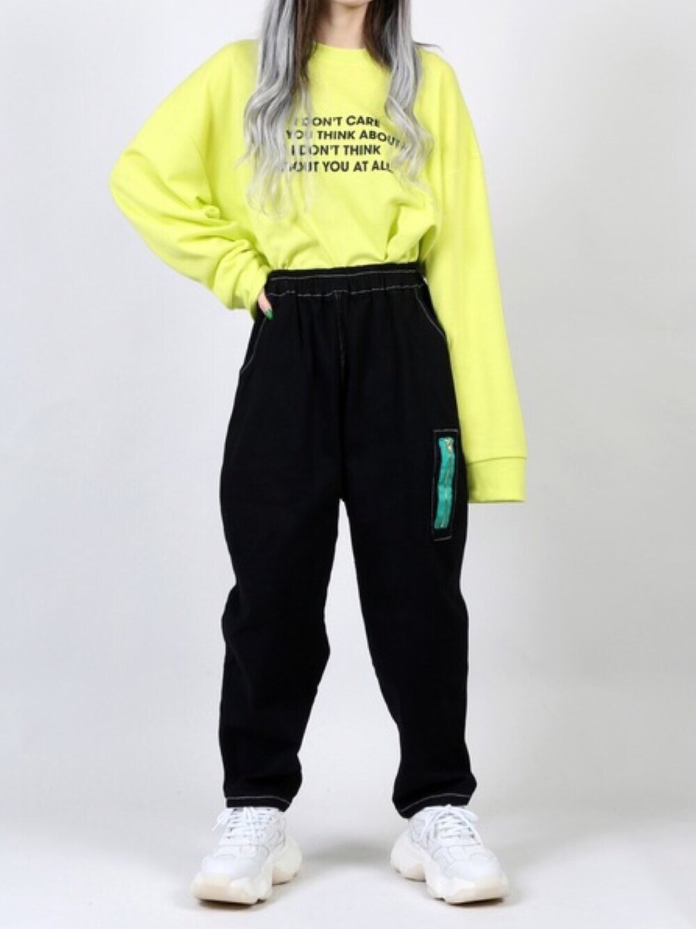 スリットロゴプルオーバー color:yellow/light beige/black size:free ZIPポケットイージーパンツ color:black/beige size:free