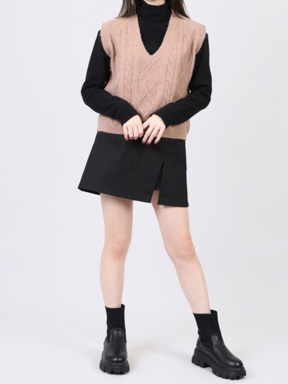 ケーブルニットベスト color:beige/off white/blue size:free ハイネックロングTシャツ color:black/white size:free