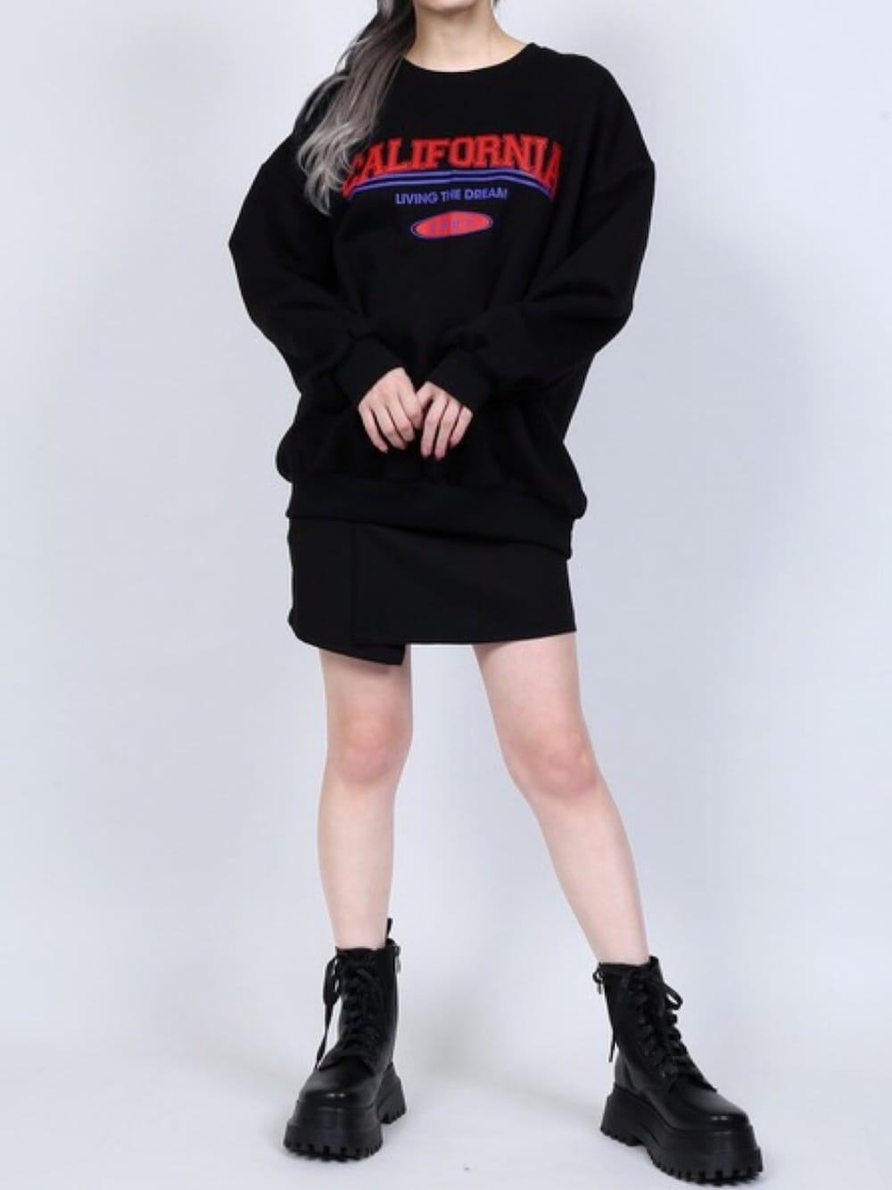 ブラック系のスウェットを着用したレディースの冬コーディネートの1枚目の写真